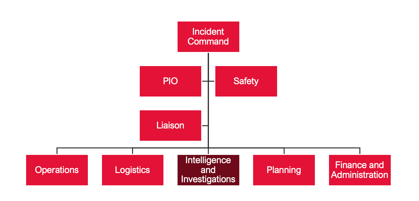 Integrate the Intelligence and Investigations Section into Incident Command. The Intelligence and Investigations (I/I) Section of the Incident Command System (ICS) is the most recent functional structure added to the decades-old organization for managing an incident. Within this Section, personnel assigned prioritize sharing information, analyzing threats, and coordinating any needs to investigate threats (in a pre-planned or no-notice incident).