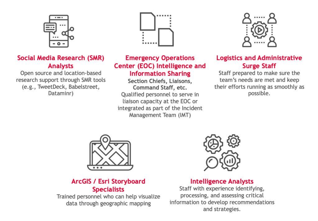 The public and private sector can call on the Hagerty Response Task Force (RTF). The Hagerty Response Task Force consists of a cadre of emergency managers and other professionals who are willing and able to respond to affected areas nation–wide. The Hagerty RTF can provide staffing surge support specifically to augment intelligence and information sharing through: